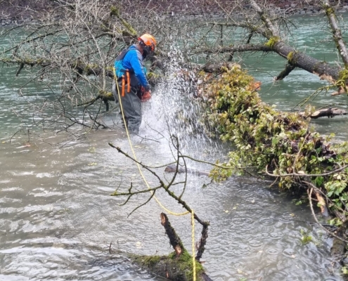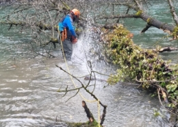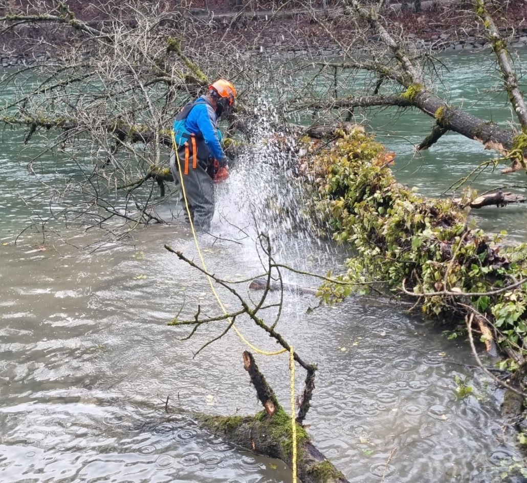 Im Auftrag des Tiefbauamts des Kantons Bern waren drei Mitarbeitende des Forstbetriebs Sigriswil vor Ort im Einsatz. Die umgestürzten Bäume wurden fachgerecht und sicher aus der Aare entfernt und das betroffene Ufergebiet wurde soweit möglich bereinigt.