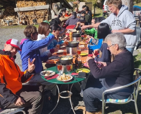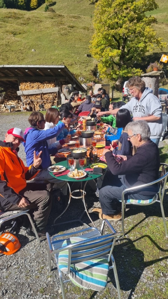 Das gemeinsame Mittagessen in Lilis Beizli auf dem Grossen Mittelberg – im wunderschönen Justistal – bot Gelegenheit zum persönlichen Austausch. Am Nachmittag folgte eine Vorstellung und Begehung des Naturstrassenunterhalts, wo die Bedeutung gut unterhaltener Waldstrassen für eine nachhaltige Bewirtschaftung verdeutlicht wurde.
